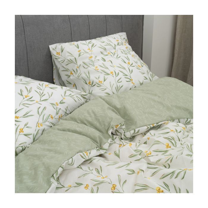 євро, Простирадло - 220 x 240 см, Підковдра - 200 x 220 см, Наволочка - 70 х 70 см, ранфорс, 1 шт., 2 шт., з абстрактним принтом, упаковка: пакет пвх, з вирізом внизу, білий з зеленим