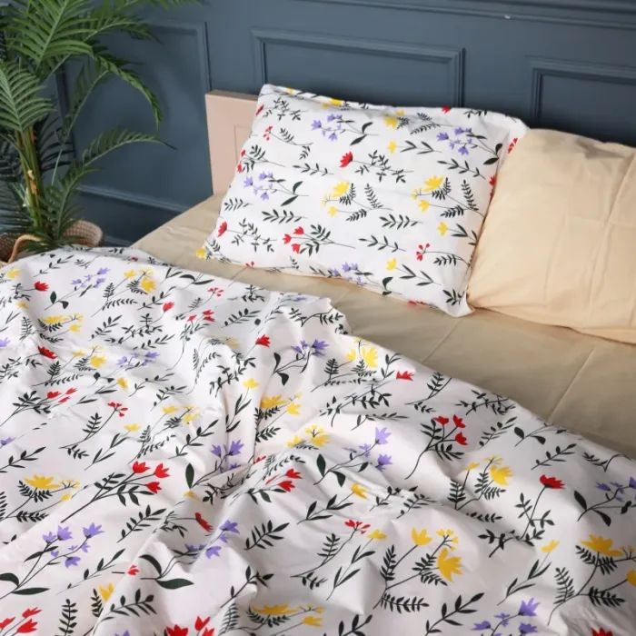 Вид - бавовняні, Спальний розмір - євро, Розмір простирадла - 220 x 240 см, Матеріал - бязь, Декорування - з квітковим принтом, Особливості - звичайна