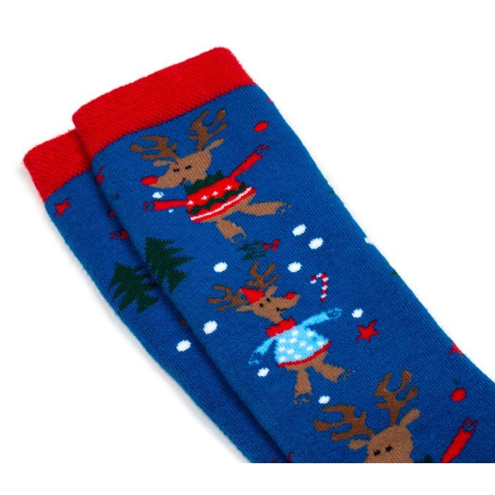 • Класні, теплі махрові шкарпетки, прикрашені акуратно вив'язаними, барвистими малюнками на новорічну тематику – приємне та затишне доповнення до новорічного або різдвяного подарунку для дитини будь-якого віку