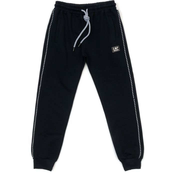 • Зручні, стильні спортивні штани на манжетах, під гумку у поясі, з вертикальними кишенями та ефектними кантами у бокових швах