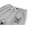Прикрашені симпатичним принтом з написом «I love kitty». Пояс і манжети з м'якої подвійної трикотажної гумки. Пояс посилений, додатково вставленою широкою резинкою, і прикрашений невеликим сіреньким бантиком з репсової стрічки.