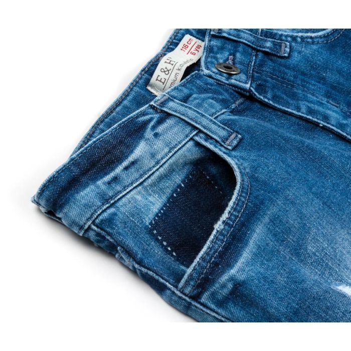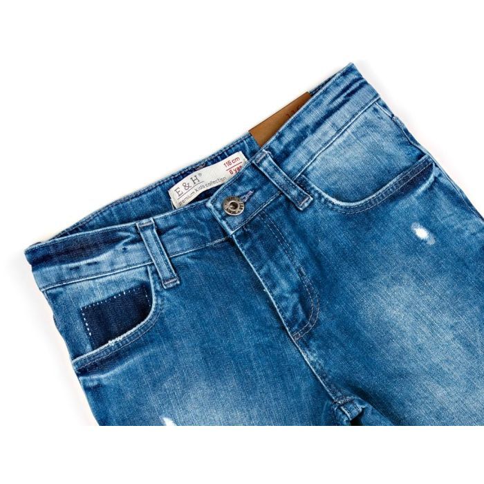 Брючини довгі, завужені до низу. Вгорі джинси не вузькі, досить вільні. Застібаються на гудзик і металеву блискавку, на талії шлевкі для ременя. В пояс з внутрішньої сторони вставлена гумка з ґудзиком для регулювання об'єму талії, яка забезпечить максимальну зручність та комфорт. Ззаду цікаві накладні кишені і темні тоновані декоративні кишені - обманки, спереду 2 основних прорізних кишені. Тканина не тонка, традиційна джинсова.