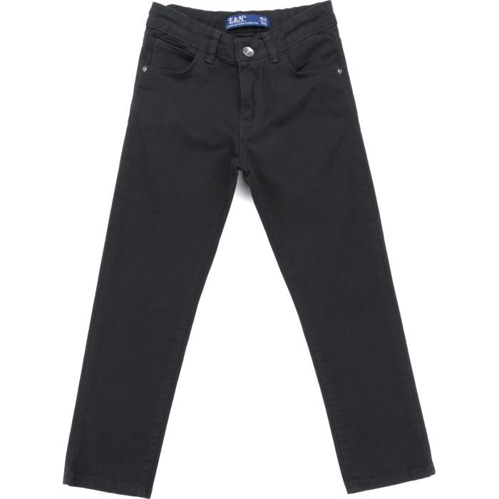 Затишна базова модель в класичному стилі «5 кишень» з дуже зручною посадкою, з приємного, щільного, чорного стрейчевого деніму. Штанини злегка завужені до низу. Застібаються на ґудзик та міцну металеву блискавку з фіксатором. Позаду - 2і накладні, а попереду - 2і прорізних кишені. На поясі є шльовки для ременя, а всередині ззаду вшита резинка для регулювання об'єму талії, що забезпечить максимальну зручність та комфорт.
