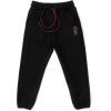 Зручні, чорного кольору, спортивні штани на манжетах. Штани пошиті з дуже приємного на дотик, якісного, м'якого, гладкого турецького трикотажу середньої щільності. Зліва штани оздоблені нашивкою. Також додатковою прикрасою служить шнурок чорно - червоного кольору.