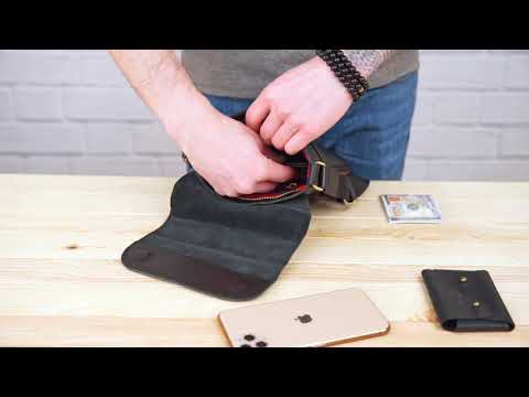 Чоловіча шкіряна чорна сумка компактного розміру. Особливістю такої сумки є те, що ви самі можете регулювати її наповненість за допомогою бічних блискавок.