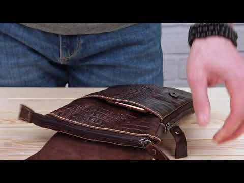 Всередині - коричнева текстильна підкладка. Ідеально доповнює аксесуар якісна металева фурнітура кольору темного срібла. На лицьовій стороні аксесуара силует з тиснення голови крокодила. По краях месенджер прошитий світлою ниткою.