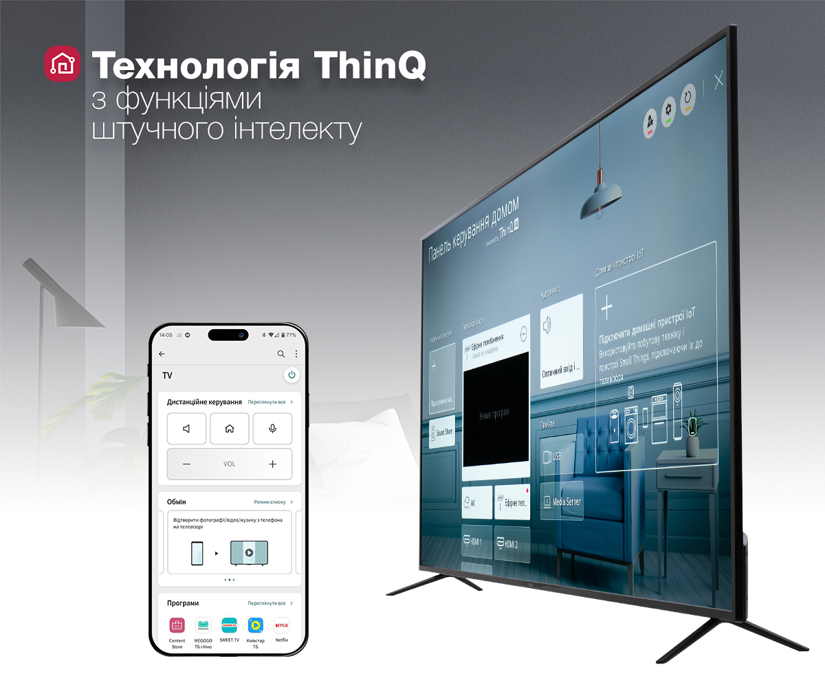 Інтелектуальні можливості ThinQ та взаємодія зі смартфоном