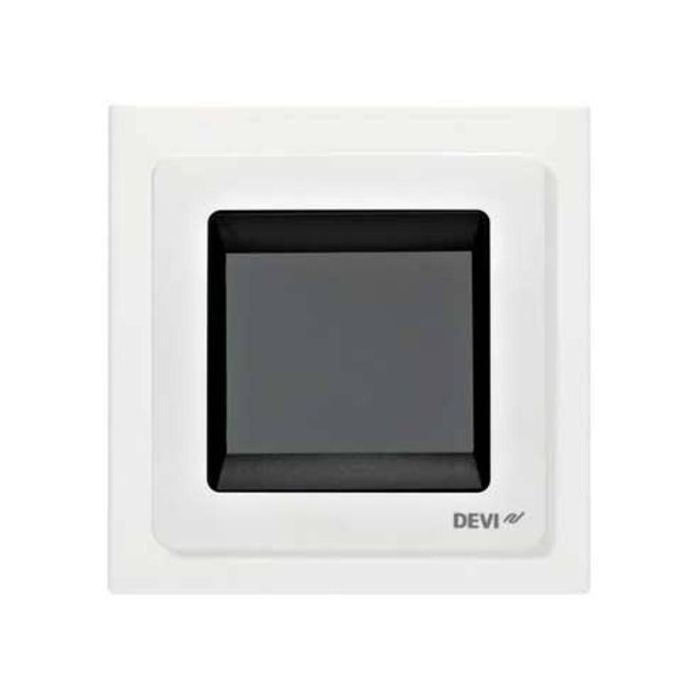 Багатофункціональний мікропроцесорний програмований терморегулятор з сенсорним управлінням. Оснащений вбудованим датчиком температури повітря. Може працювати з датчиками температури підлоги різних виробників. Devireg Touch застосовується для систем повного опалення або для систем Тепла підлога. Має інтелектуальний таймер з розрахунком часу включення. Конструкція корпусу передбачає установку на стіну в монтажну коробку.