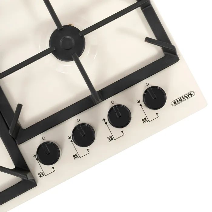 Якість матеріалів та розкішний дизайн Створена з високоякісної нержавіючої сталі, ця варочна поверхня забезпечує надзвичайну довговічність та легкість у догляді. Гладка глянцева поверхня в бежевому відтінку додає кухні вишуканості та тепла, а міцні чавунні решітки не лише підтримують посуд, але й створюють професійний вигляд, запобігаючи зсуванню під час приготування.