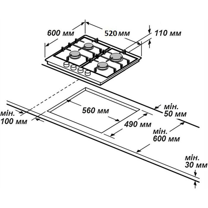 Варочна поверхня підтримує роботу з природним газом, а додаткові форсунки дозволяють використовувати бутан або зріджений газ. Це забезпечує універсальність у використанні, навіть якщо у вас немає доступу до трубопроводу.