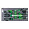 Викрутка з ергономічною рукояткою, храповим механізмом і набором наконечників якості CR-V, що означає високу міцність матеріалу, що забезпечує зниження зносу. Набір включає в себе гнучкі подовжувальні насадки, що забезпечує доступ до болтів і гвинтів навіть в дуже важкодоступних місцях. Крім наконечників, набір також включає в себе торцеві головки для більш гнучкою установки і затягування гайок.
