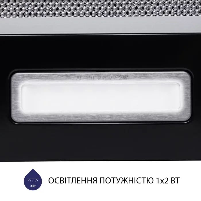 Сучасне освітленняКухонна витяжка обладнана LED-лампою потужністю 2 Вт. Світлодіоди забезпечують комфортне додаткове освітлення варильної поверхні і є найбільш економним джерелом світла.