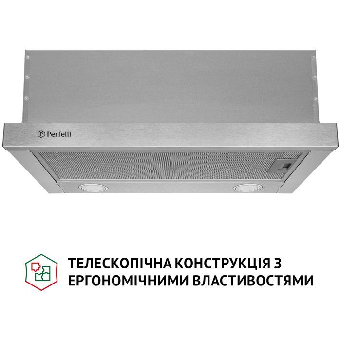 Телескопічна кухонна витяжка Perfelli TL 6212 I 700 LED має ергономічні властивості, тому дозволяє раціонально використовувати простір у зоні над варильною поверхнею. Конфігурація моделі включає: