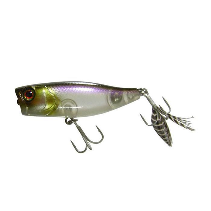 На хвостовому трійнику є маленька строката опушка з шийного півнячого пера, яка додатково залучає рибу і стабілізує поппер при проводці.
